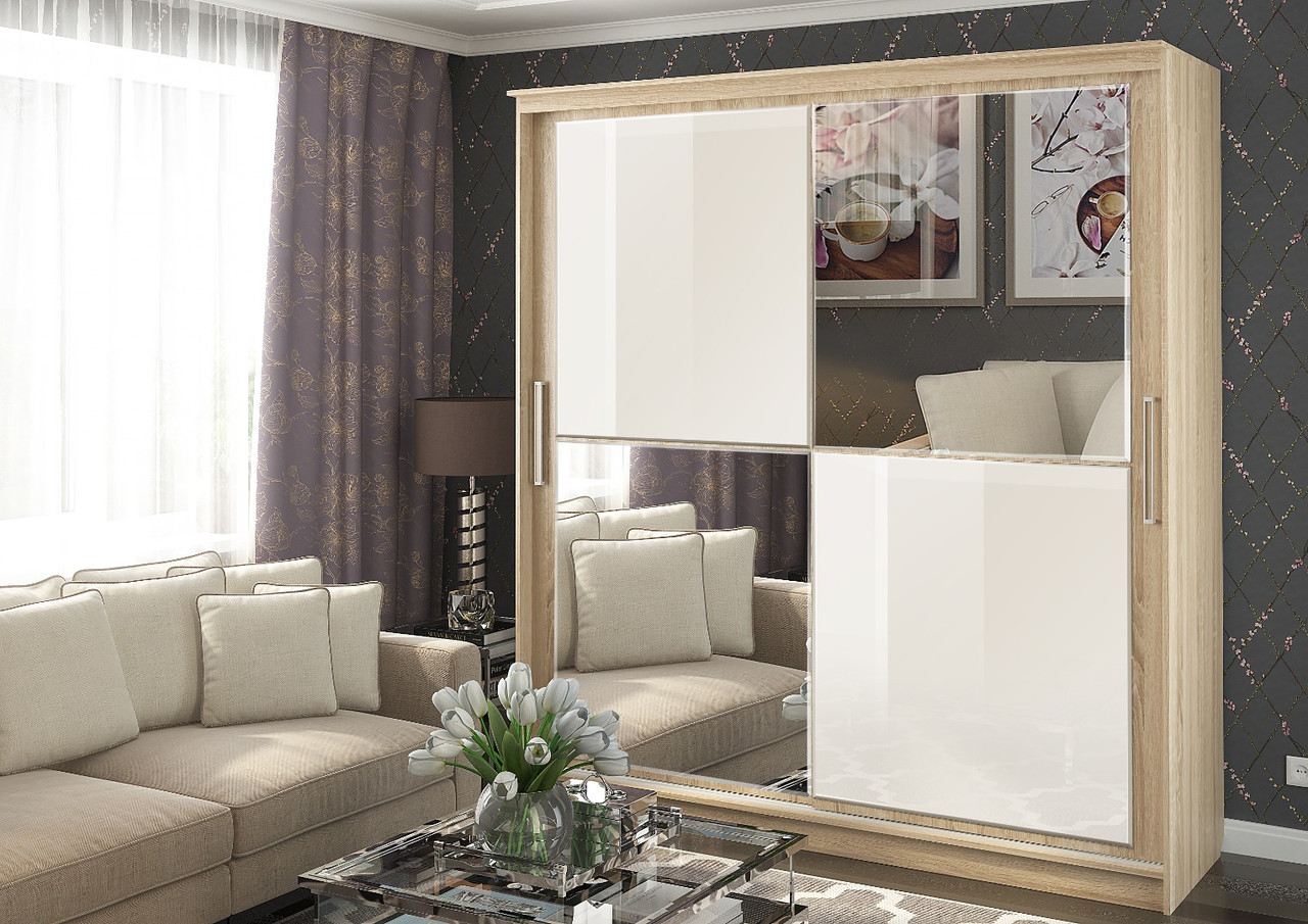 Внешне шкаф смотрится эстетично и красиво. Его цветовое исполнение будет визуально увеличивать пространство в вашей комнате.