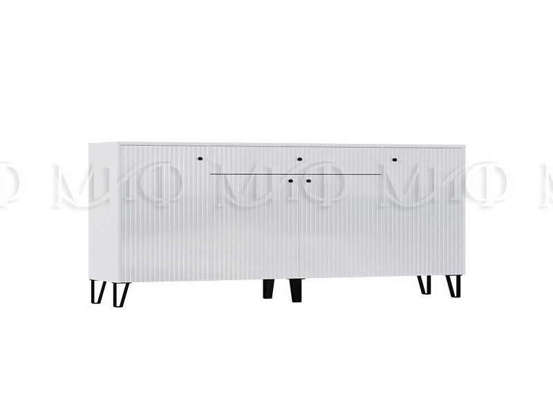 Комод "Оливия" для гостиной с волнообразной фрезеровкой - это элегантное и функциональное мебельное изделие. В центре комода расположен выдвижной ящик, который может использоваться для хранения различных мелочей или личных вещей.