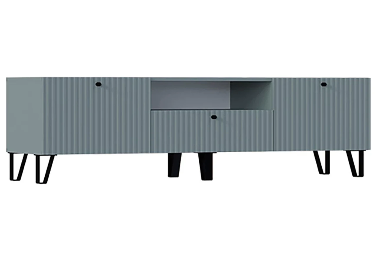 Тумба ТВ "Оливия" является функциональным и стильным решением для размещения телевизора и другой аудио-видео техники в гостиной или зоне отдыха. Ее конструкция включает выдвижной ящик, расположенный под открытой полкой, предназначенный для удобного хранения пультов дистанционного управления, кабелей и других мультимедийных аксессуаров. Дополнительно, тумба оснащена закрытыми полками, которые предоставляют пространство для хранения различных вещей. Но особенно привлекательной делает эту тумбу ее фасады, украшенные волнообразной фрезеровкой.
